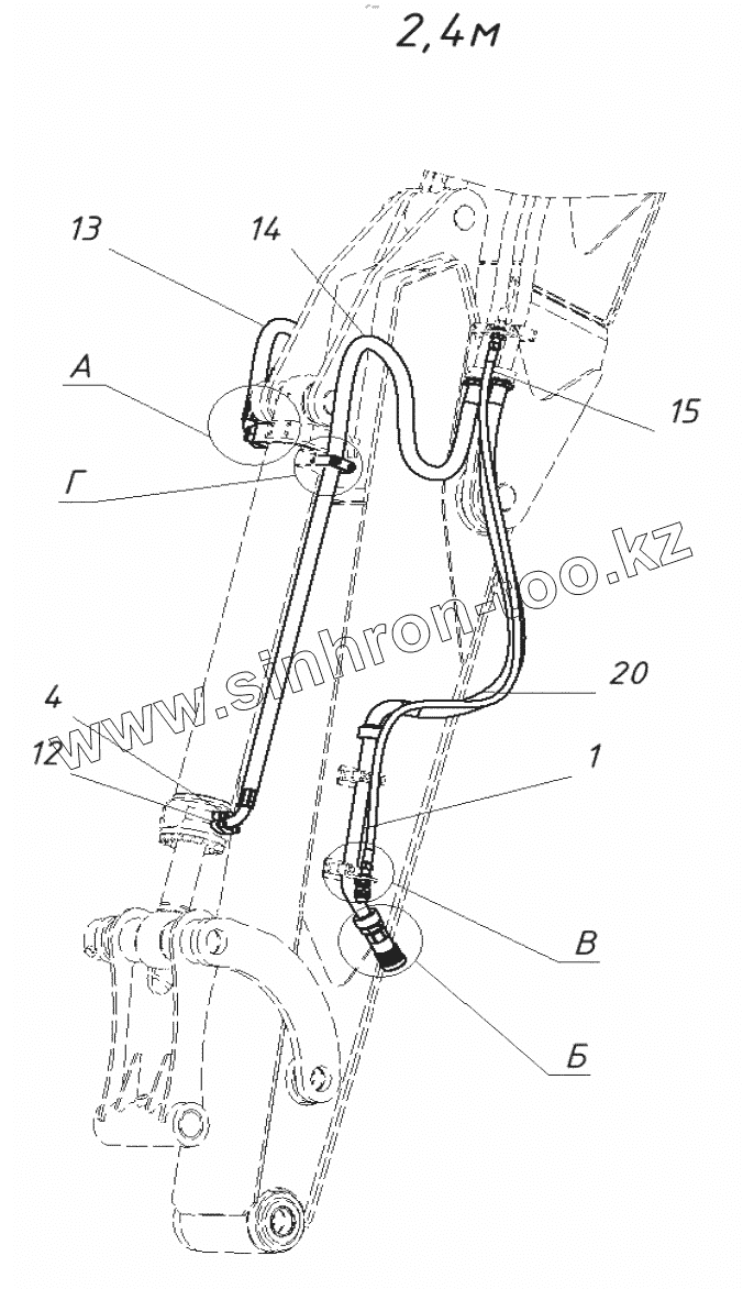 Каталог запасных частей к технике: ТВЭКС WX200. Гидроразводка рукояти 2400 с разводкой под гидромолот