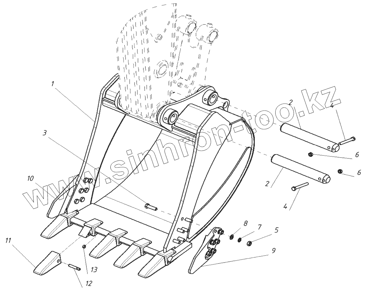 Каталог запасных частей к технике: ТВЭКС WX200. Установка ковша