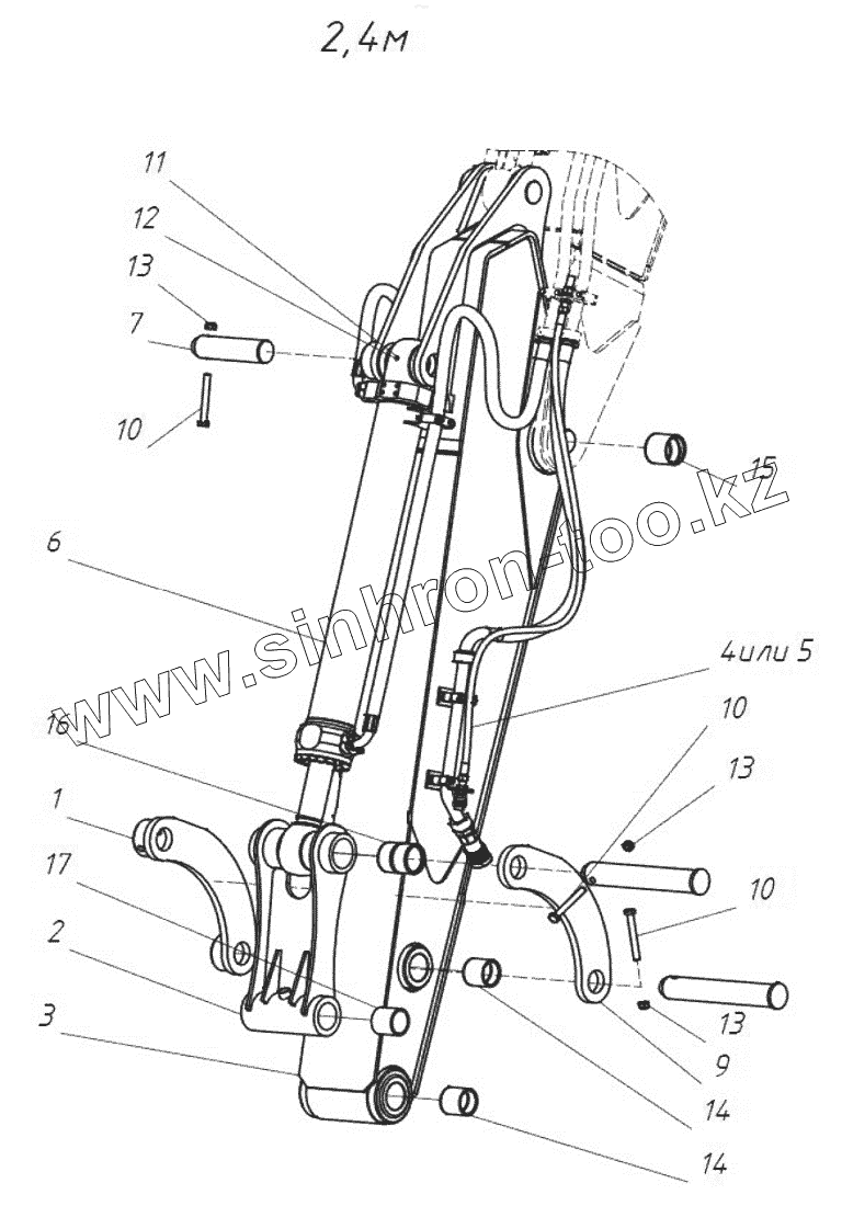 Каталог запасных частей к технике: ТВЭКС WX200. Установка рукояти 2400 с разводкой под гидромолот