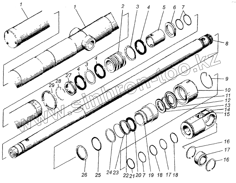 Каталог запасных частей к технике: Угличмаш КС-3577-3. Гидроцилиндр У.31.03.000-1