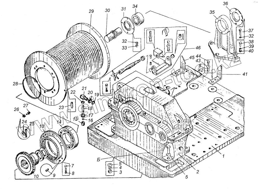 Каталог запасных частей к технике: Угличмаш КС-3577. Лебедка КС-3577.26.000-3