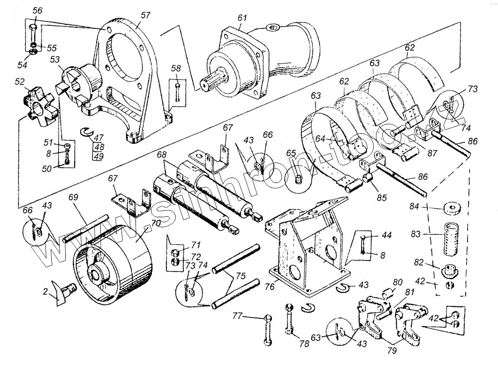 Каталог запасных частей к технике: Угличмаш КС-3577. Лебедка КС-3577.26.000-3