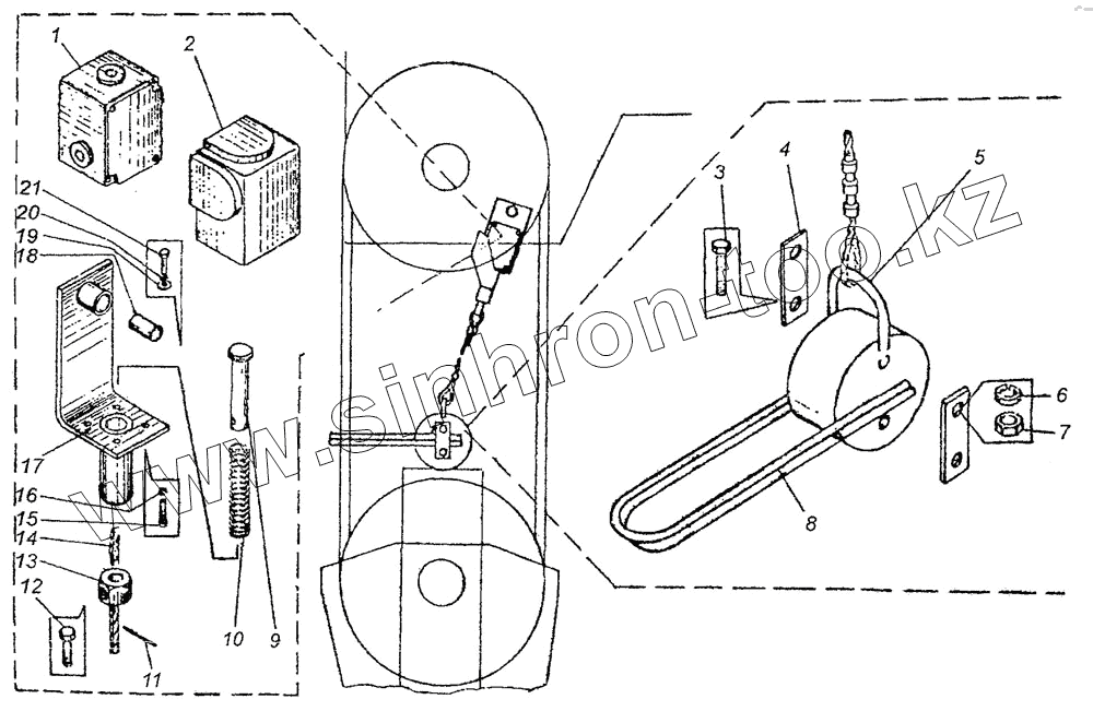Каталог запасных частей к технике: Угличмаш КС-3577. Ограничитель подъема крюка КС-3577.80.400