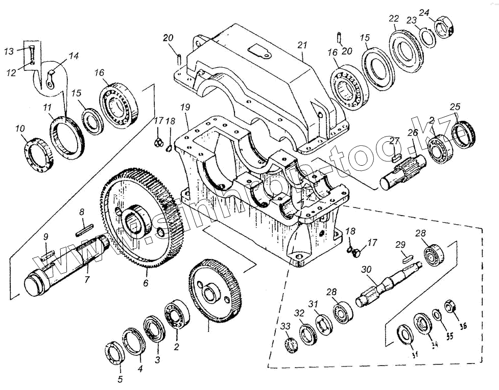 Каталог запасных частей к технике: Угличмаш КС-3577. Редуктор Ц2У-250-31,5-11
