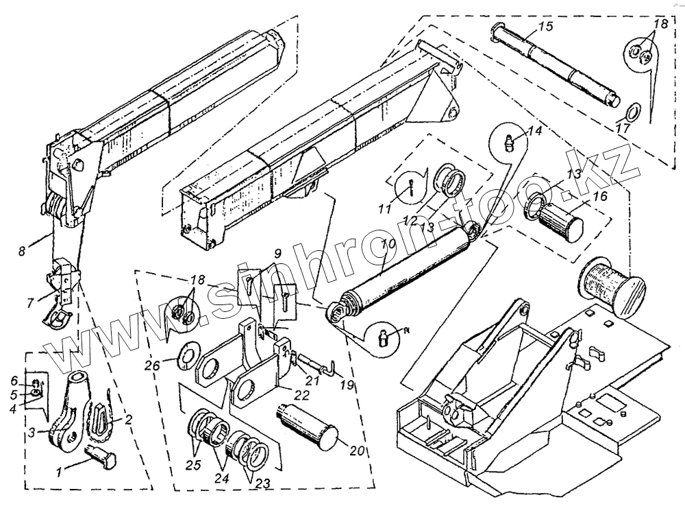 Каталог запасных частей к технике: Угличмаш КС-3577. Установка телескопической стрелы КС-3577.63.00