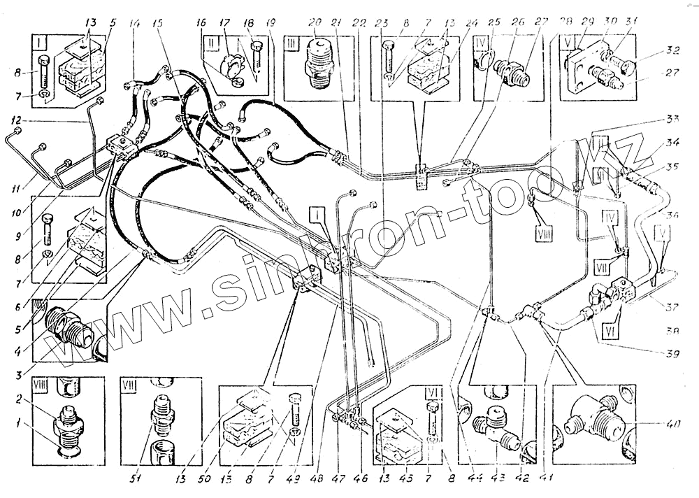 Каталог запасных частей к технике: УВЗ ЭО-5126. Трубопроводы управления на платформе