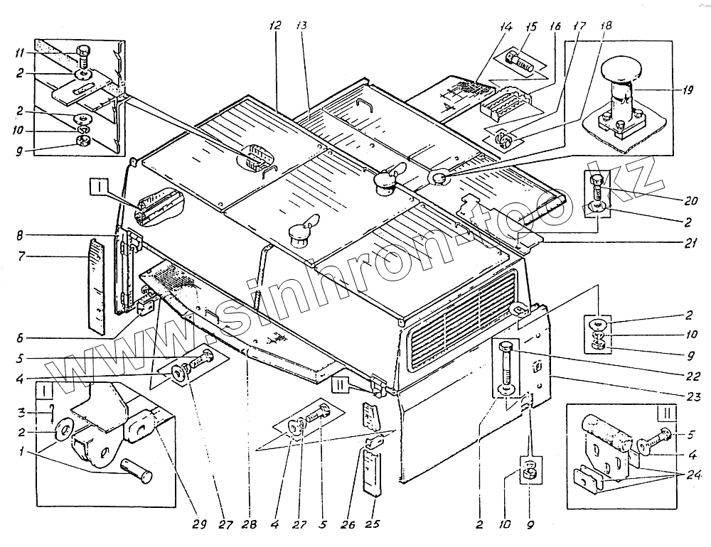 Каталог запасных частей к технике: УВЗ ЭО-5126. Установка капотов