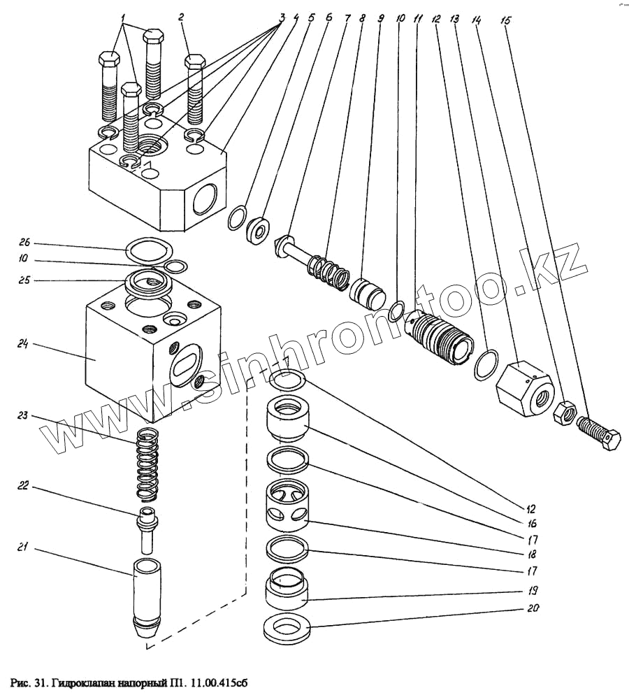 Каталог запасных частей к технике: УВЗ ПУМ-500. Гидроклапан напорный П1.11.00.415сб