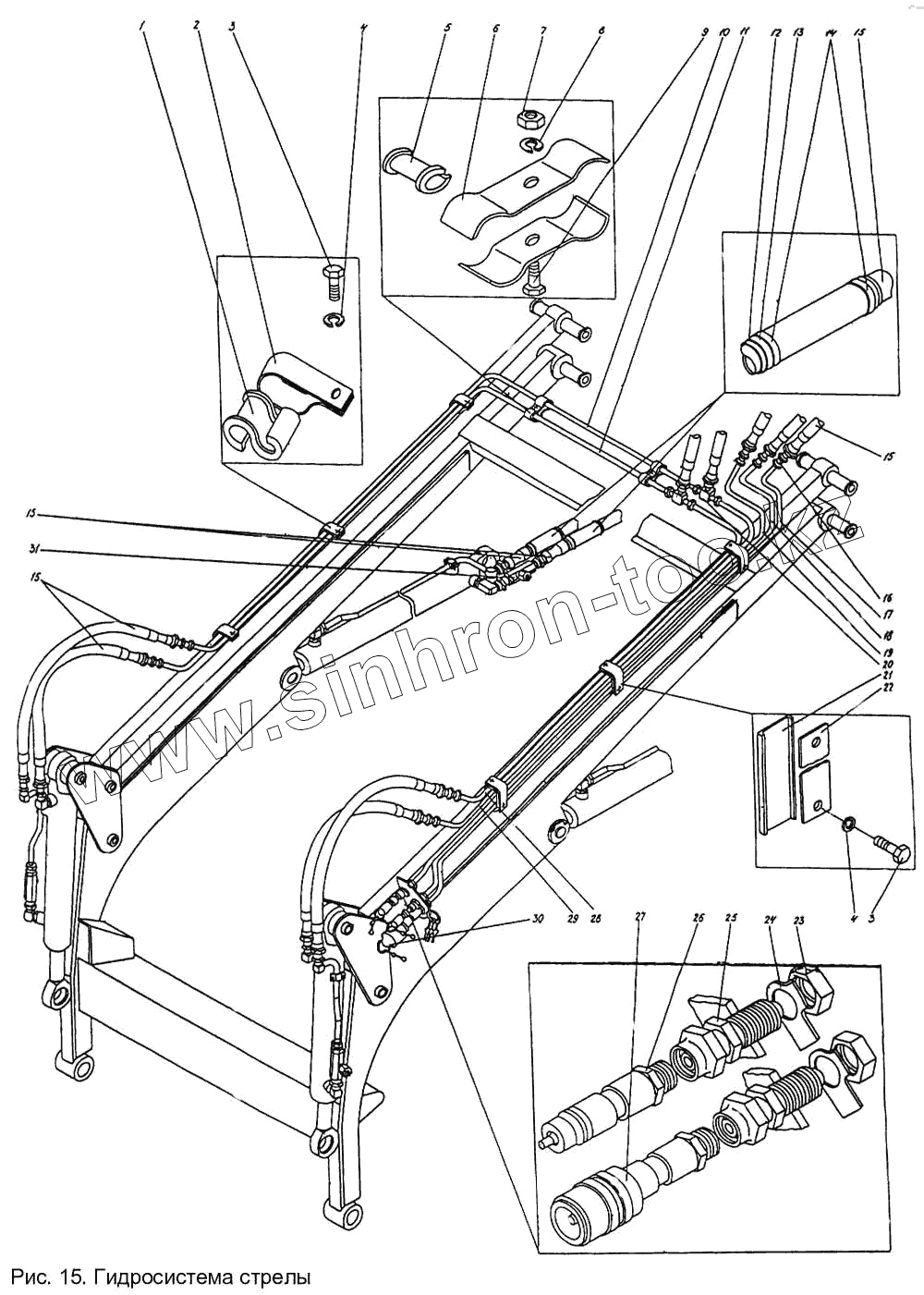 Каталог запасных частей к технике: УВЗ ПУМ-500. Гидросистема стрелы П1.10.05сб-1
