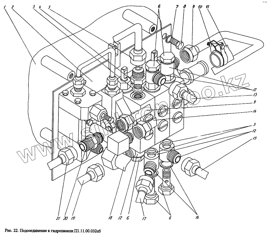 Каталог запасных частей к технике: УВЗ ПУМ-500. Подсоединение к гидропанели П1.11.00.032сб
