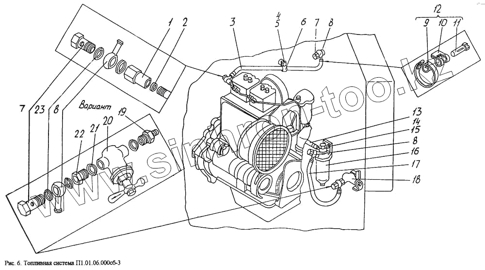 Каталог запасных частей к технике: УВЗ ПУМ-500. Топливная система П1.01.06.000сб