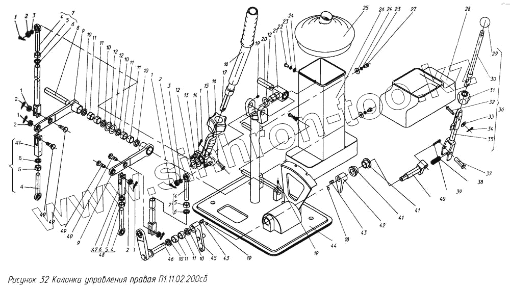 Каталог запасных частей к технике: УВЗ ПУМ-500. Установка правой колонки управления П1.11.02.200сб