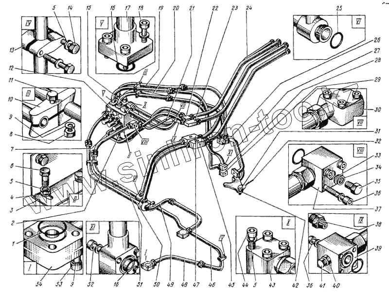 Каталог запасных частей к технике: ВЭКС ЭО-5122. Трубопроводы на платформе