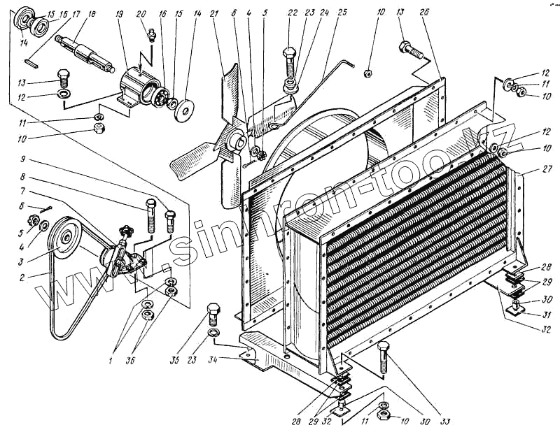 Каталог запасных частей к технике: ВЭКС ЭО-5122. Установка маслоохладителя