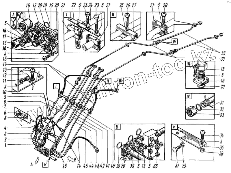 Каталог запасных частей к технике: ВЭКС ЭО-5124. Трубопроводы моноблочной стрелы