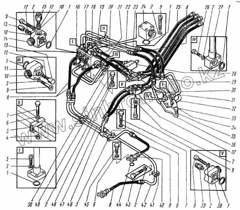 Каталог запасных частей к технике: ВЭКС ЭО-5124. Трубопроводы на платформе