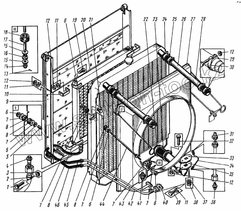 Каталог запасных частей к технике: ВЭКС ЭО-5124. Установка радиаторов