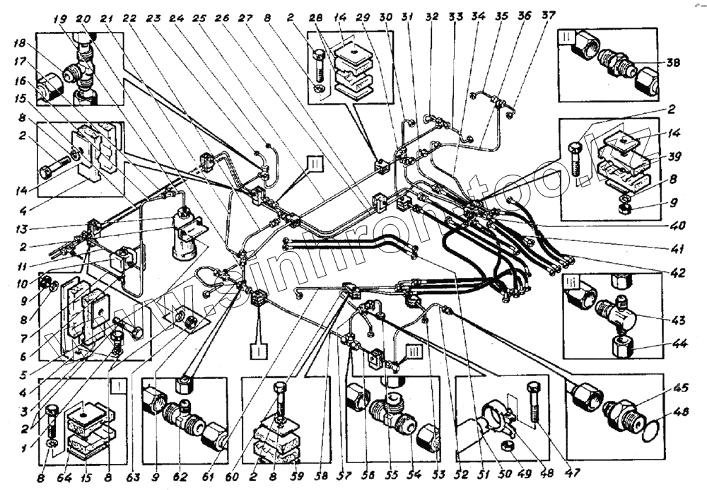 Каталог запасных частей к технике: ВЭКС ЭО-5221. Трубопроводы управления на платформе