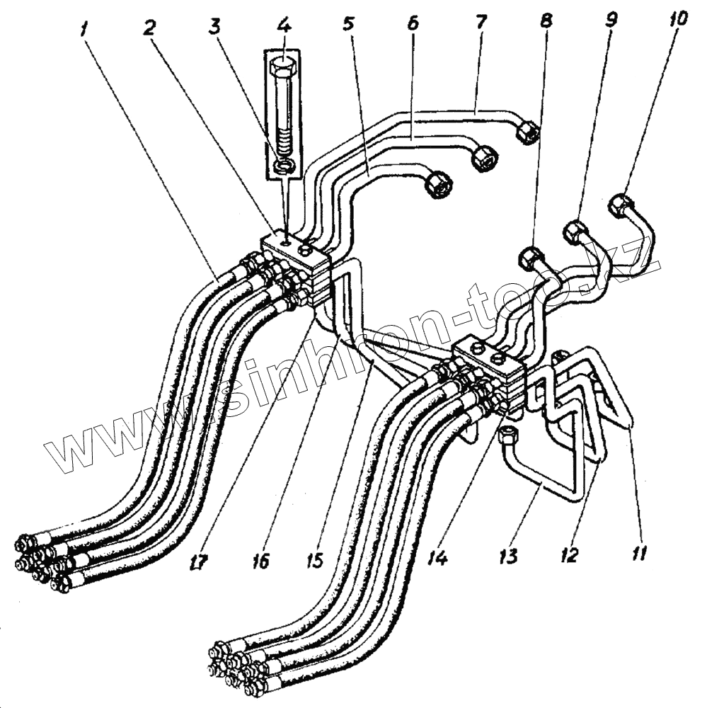 Каталог запасных частей к технике: ВЭКС ЭО-5221. Трубопроводы управления стрелой