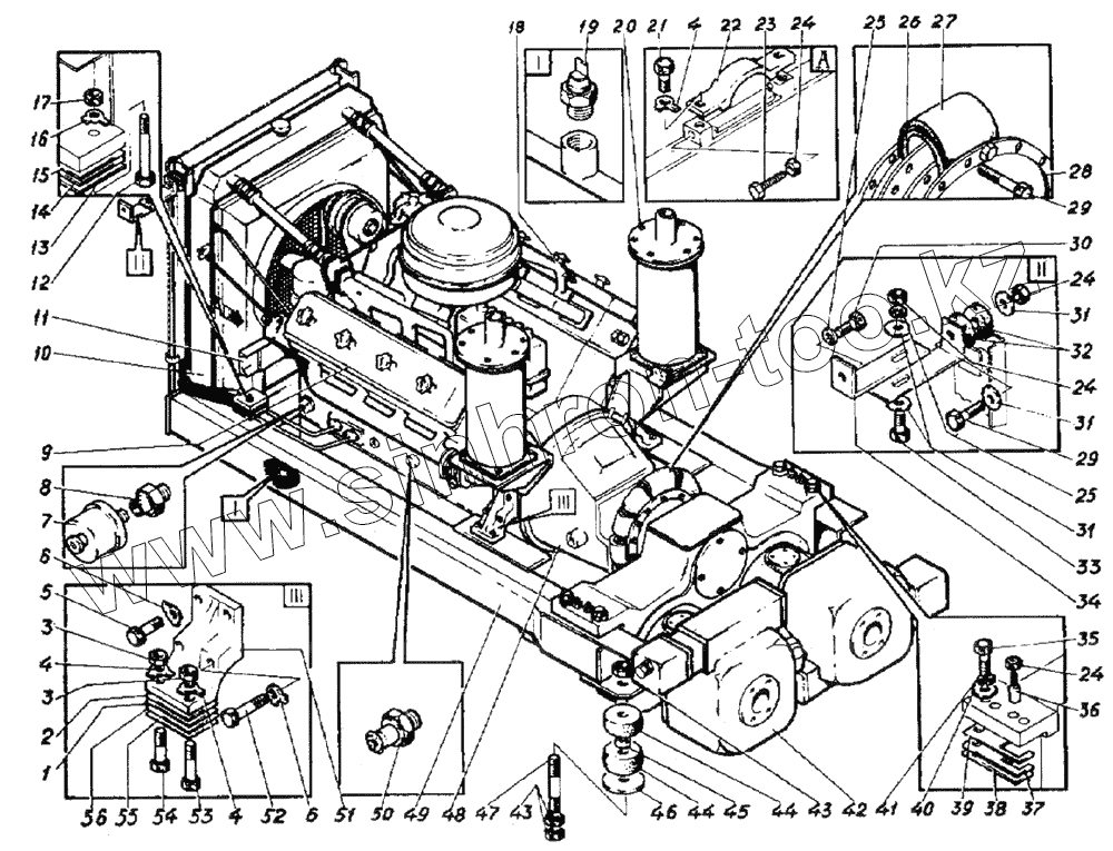 Каталог запасных частей к технике: ВЭКС ЭО-5221. Установка дизеля и насосов