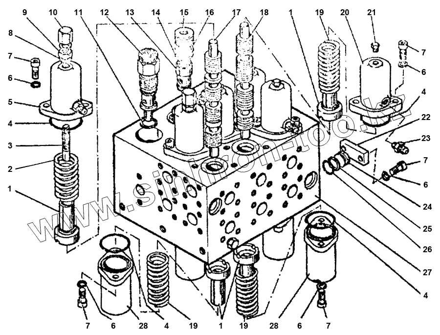 Каталог запасных частей к технике: ВЭКС ЭО-5225. ЭО-5122.06.09.000-5 Гидроаппарат гидроцилиндров