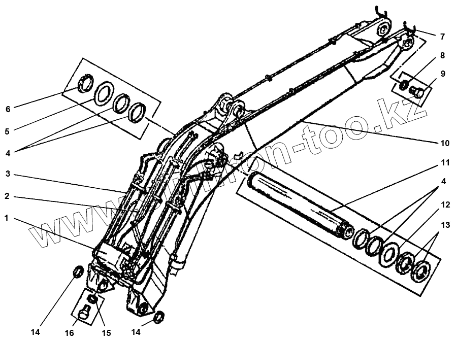 Каталог запасных частей к технике: ВЭКС ЭО-5225. ЭО-5124А.28.00.000 Установка моноблочной стрелы