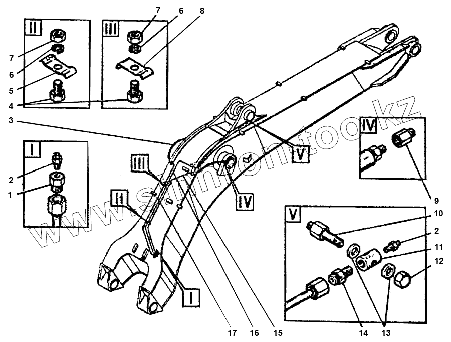 Каталог запасных частей к технике: ВЭКС ЭО-5225. ЭО-5124А.28.03.000 Трубопроводы смазки стрелы