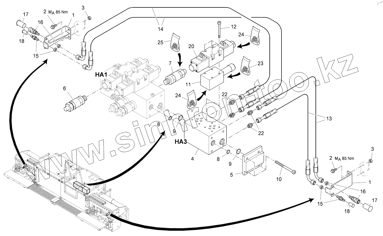 Каталог запасных частей к технике: VOGELE AB500-2 TV. BASIC SCREED, HYD.