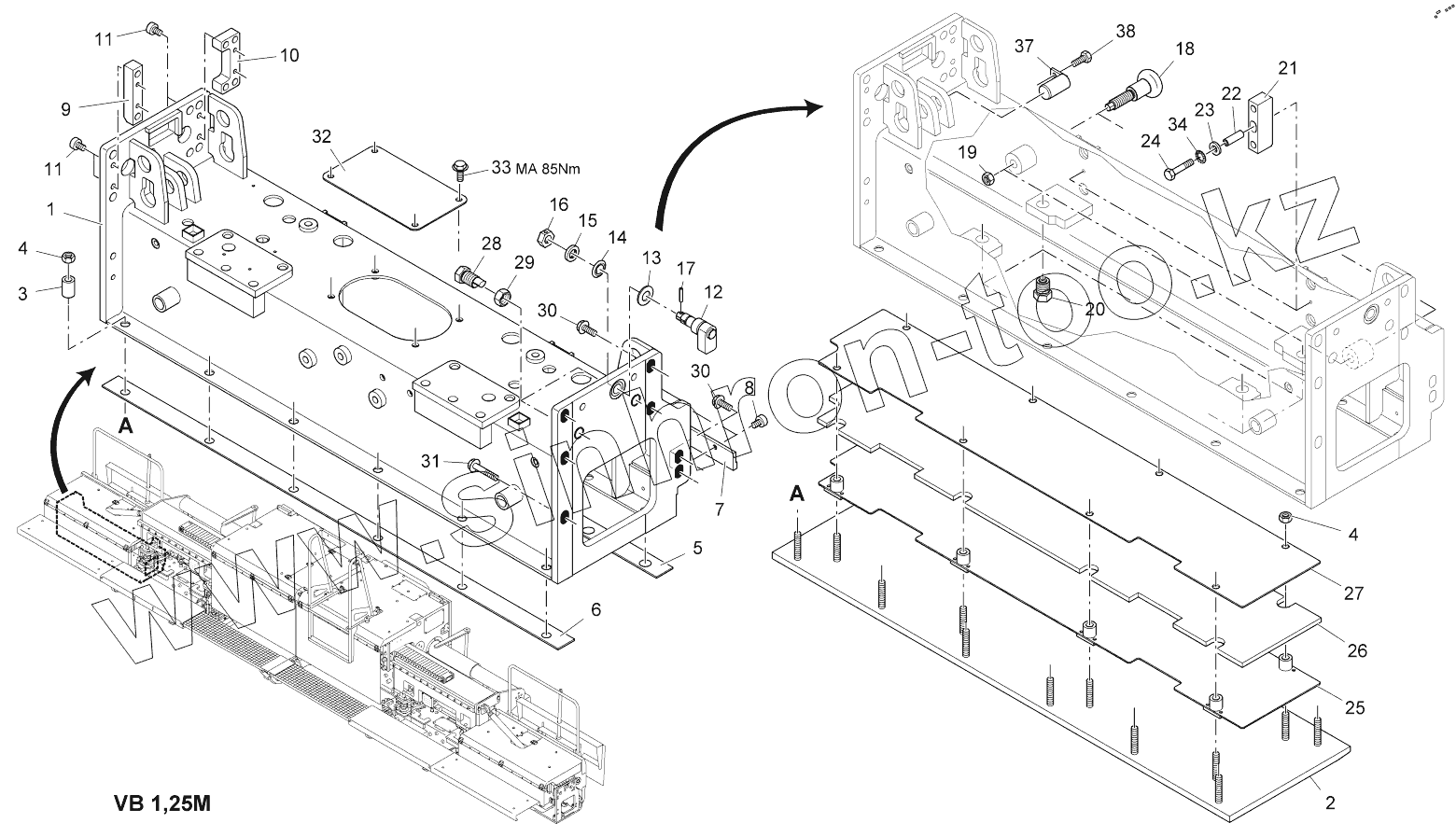 Каталог запасных частей к технике: VOGELE AB500-2 TV. FRAME, LEFT SIDE