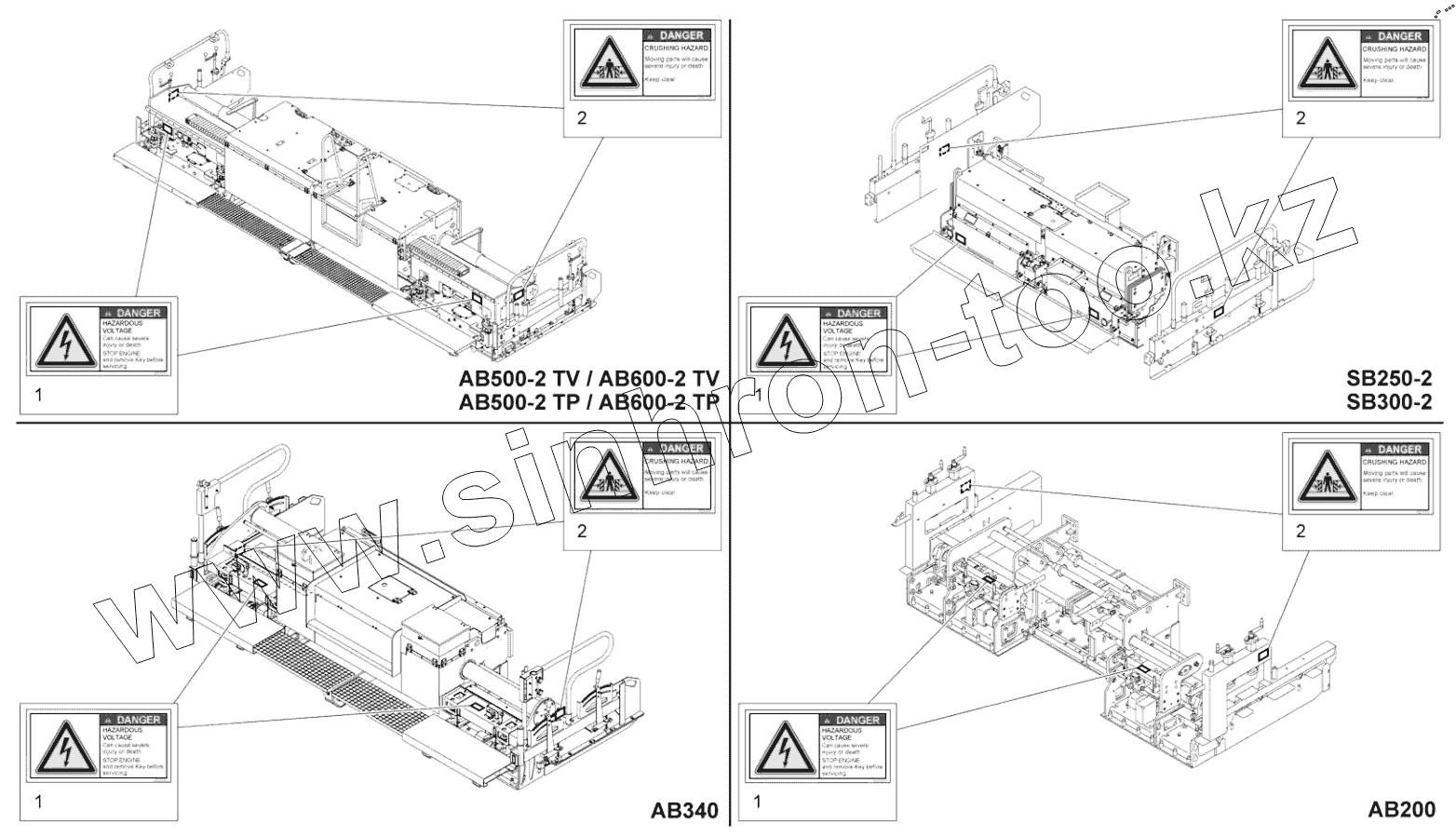 Каталог запасных частей к технике: VOGELE AB500-2 TV. SIGNS AND WARNINGS USA