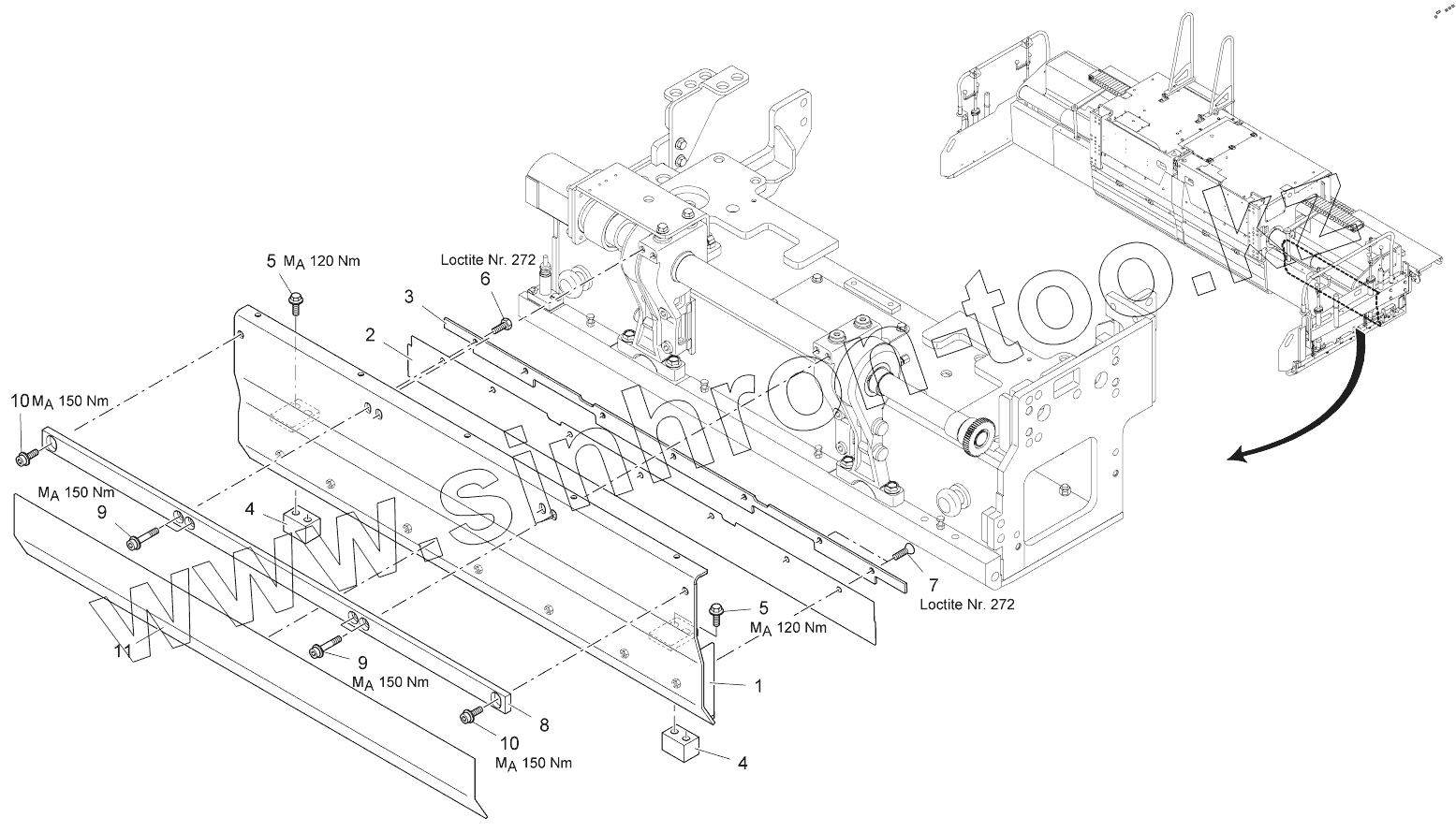 Каталог запасных частей к технике: VOGELE AB500-2 TV. TAMPER SHIELD: EXTENDING UNIT