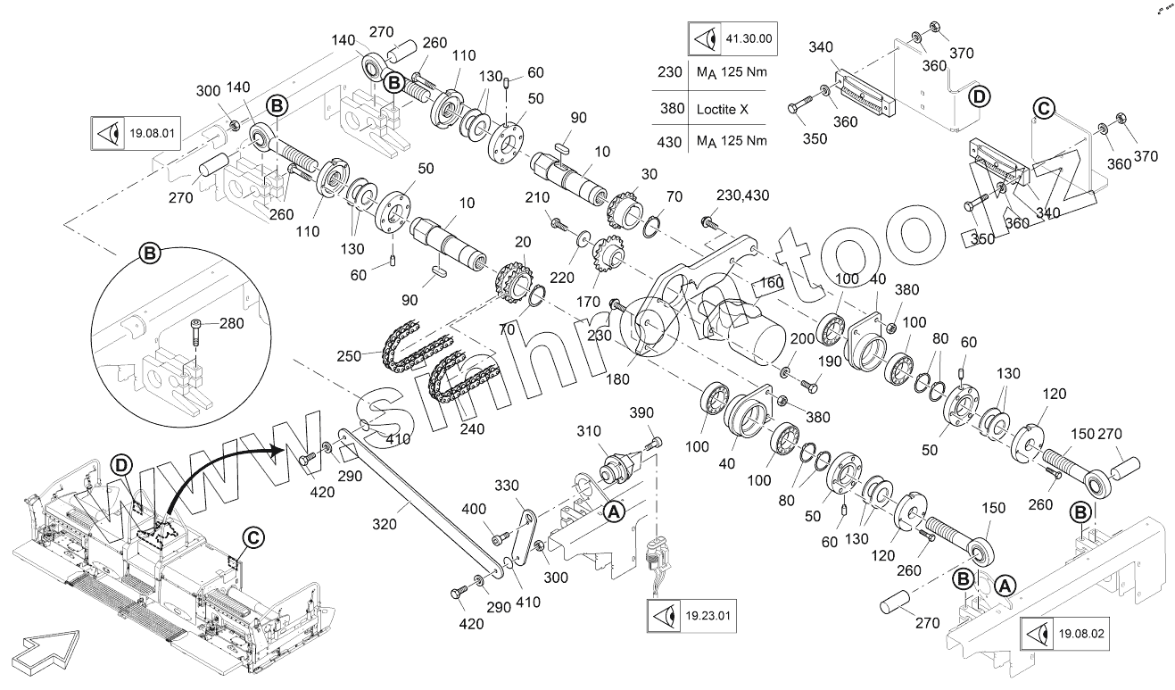Каталог запасных частей к технике: VOGELE AB500-3 TV. CROWN ADJUSTMENT WITH DRIVE