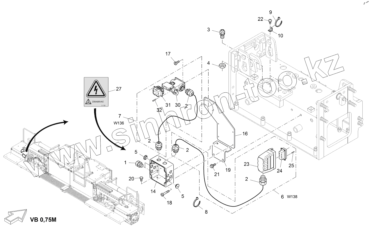 Каталог запасных частей к технике: VOGELE AB500-3 TV. CURRENT SUPPLY: SCREED HEATING