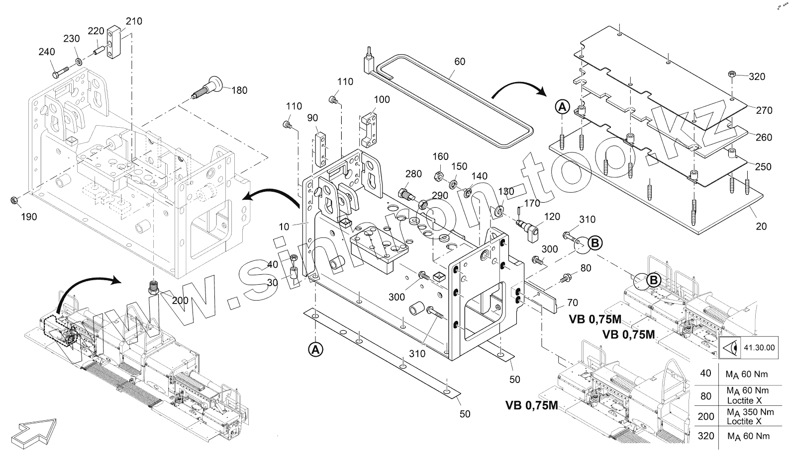 Каталог запасных частей к технике: VOGELE AB500-3 TV. FRAME: VB 0,75M, LEFT SIDE
