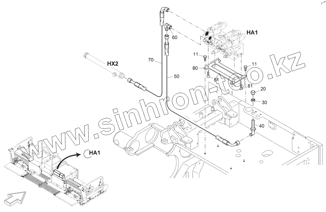 Каталог запасных частей к технике: VOGELE AB500-3 TV. HYDRAULIC OIL FEED
