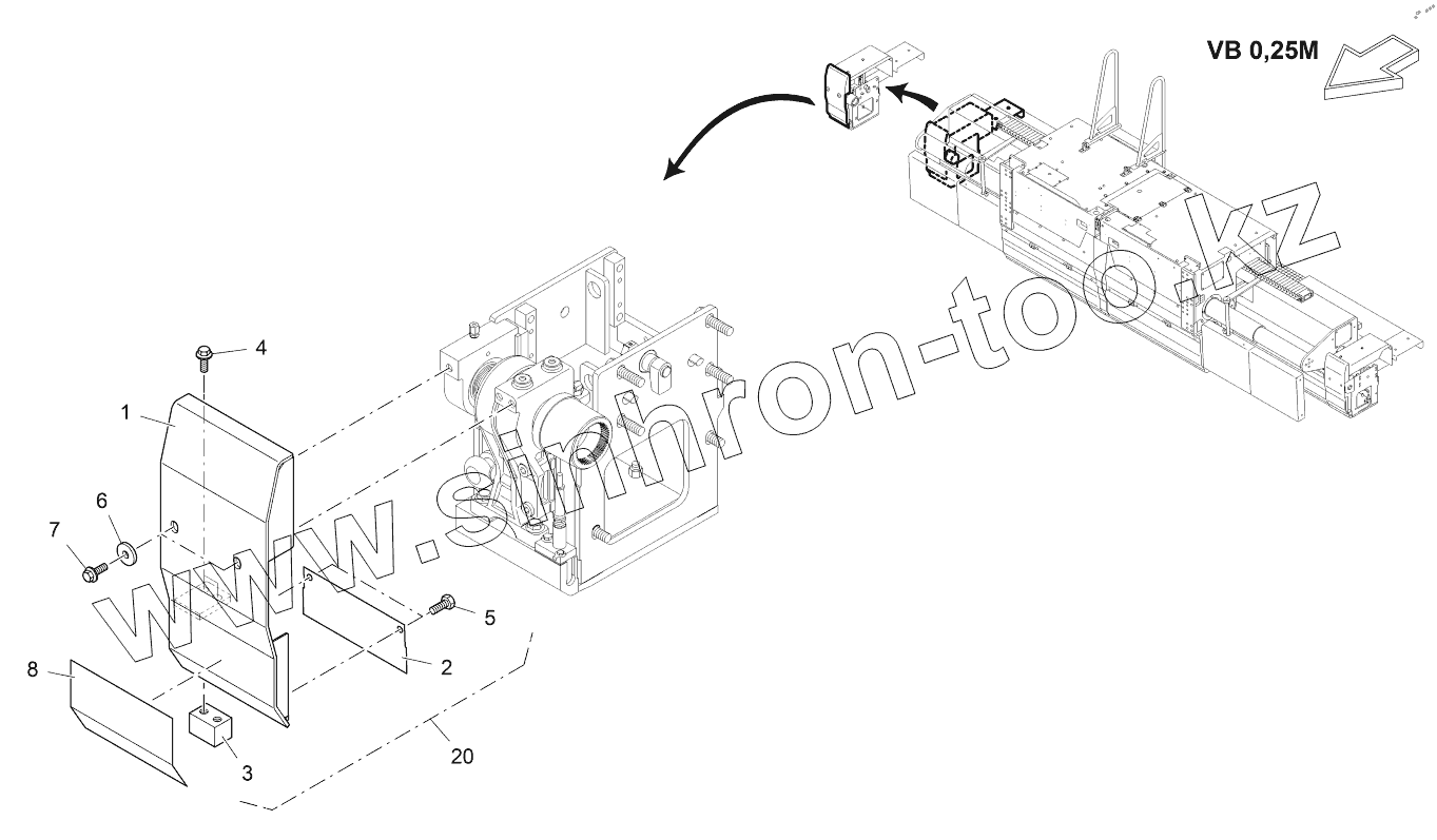 Каталог запасных частей к технике: VOGELE AB500-3 TV. TAMPER SHIELD: VB 0,25M, RH