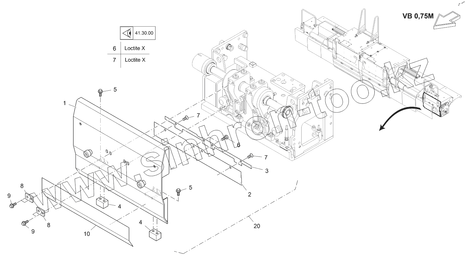Каталог запасных частей к технике: VOGELE AB500-3 TV. TAMPER SHIELD: VB 0,75M, LH
