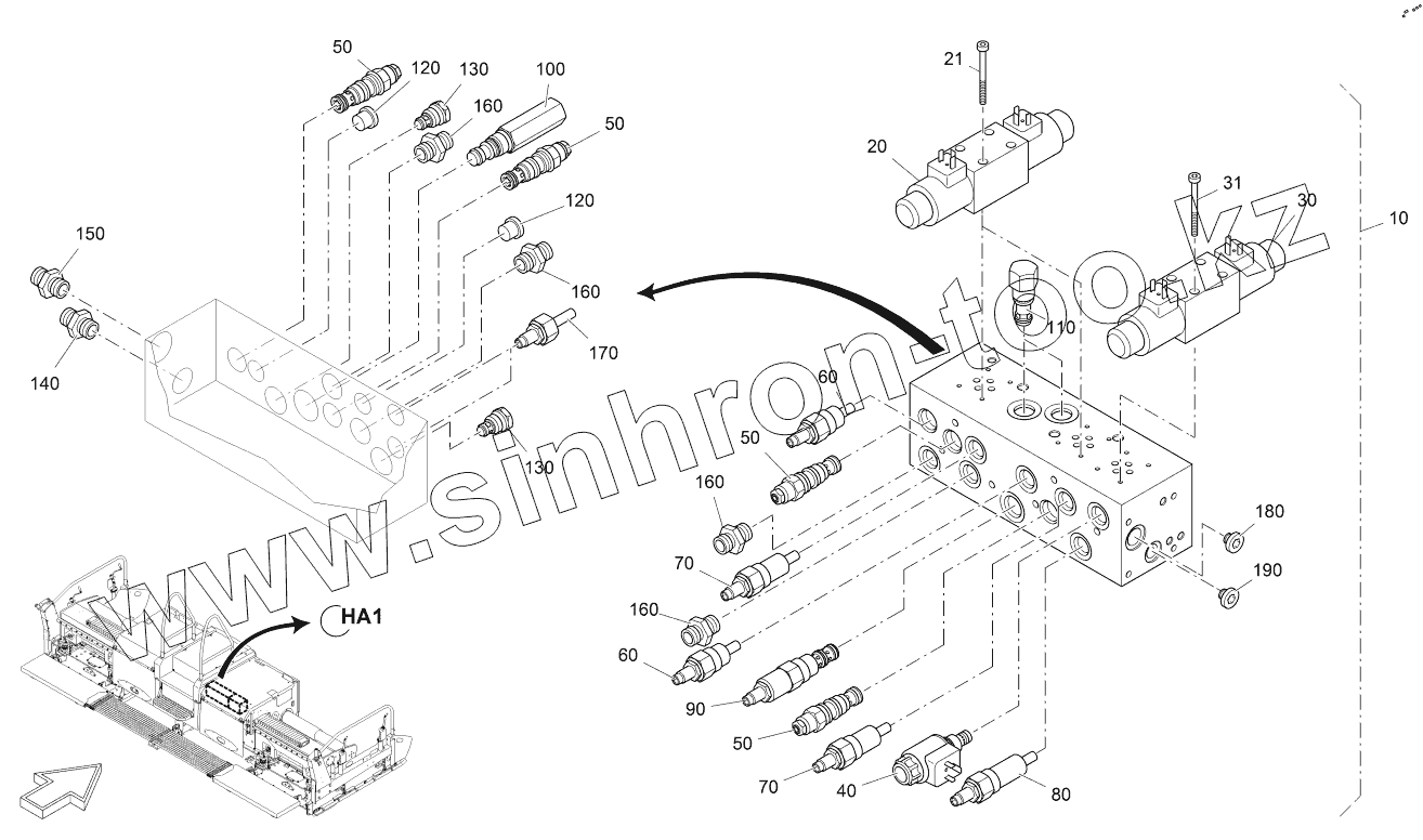 Каталог запасных частей к технике: VOGELE AB500-3 TV. VALVE BLOCK