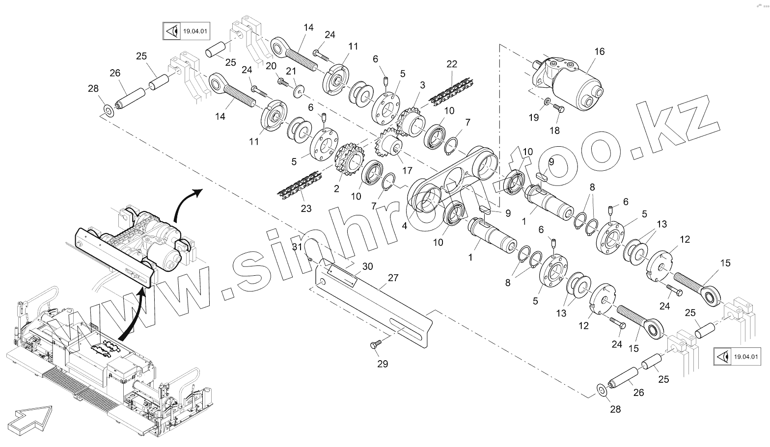 Каталог запасных частей к технике: VOGELE AB 340. CROWN ADJUSTMENT WITH DRIVE