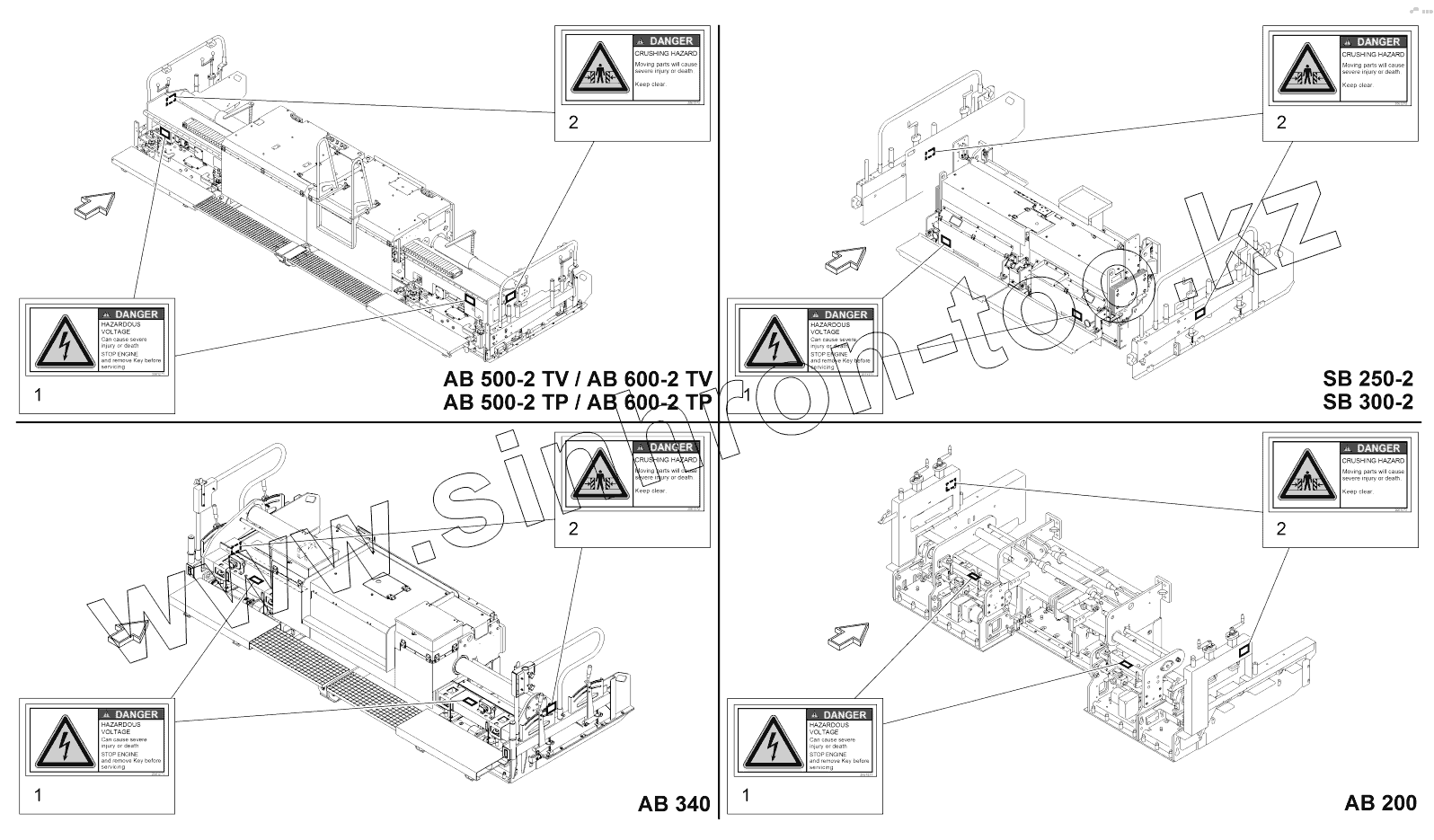 Каталог запасных частей к технике: VOGELE AB 340. OPERATING INSTRUCTIONS/WARNING USA