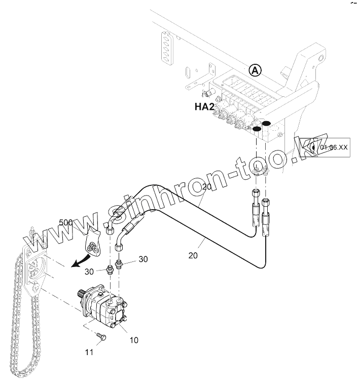Каталог запасных частей к технике: VOGELE SUPER 1100-3. DRIVE: CONVEYOR, LEFT HYD.