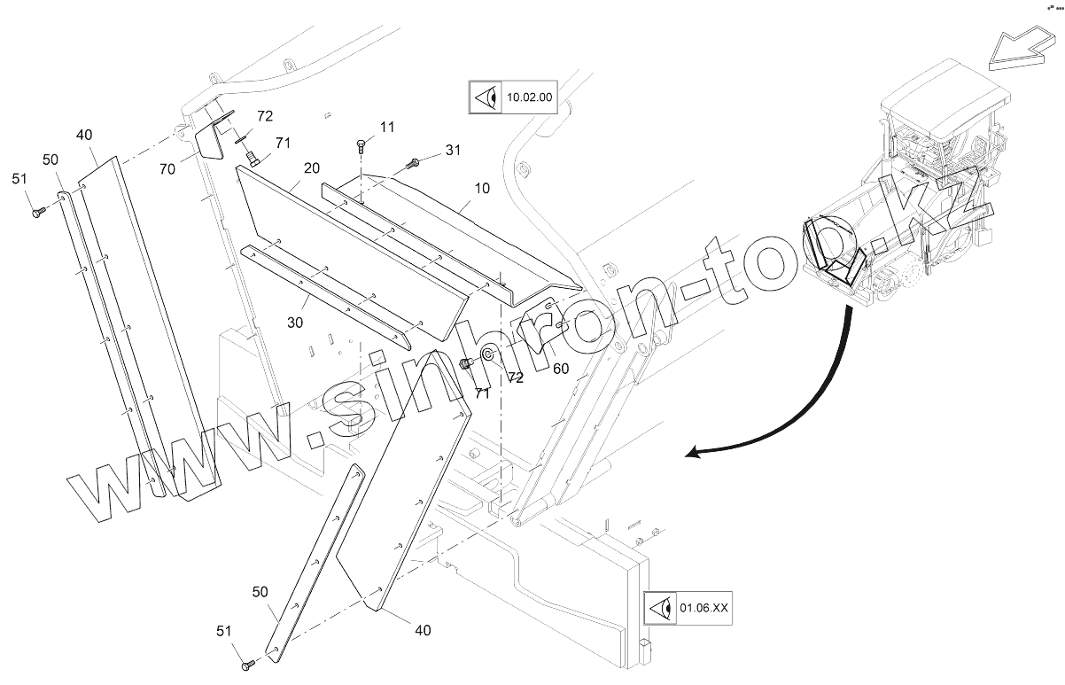 Каталог запасных частей к технике: VOGELE SUPER 1100-3. HOPPER FRONT (MECHANICAL)