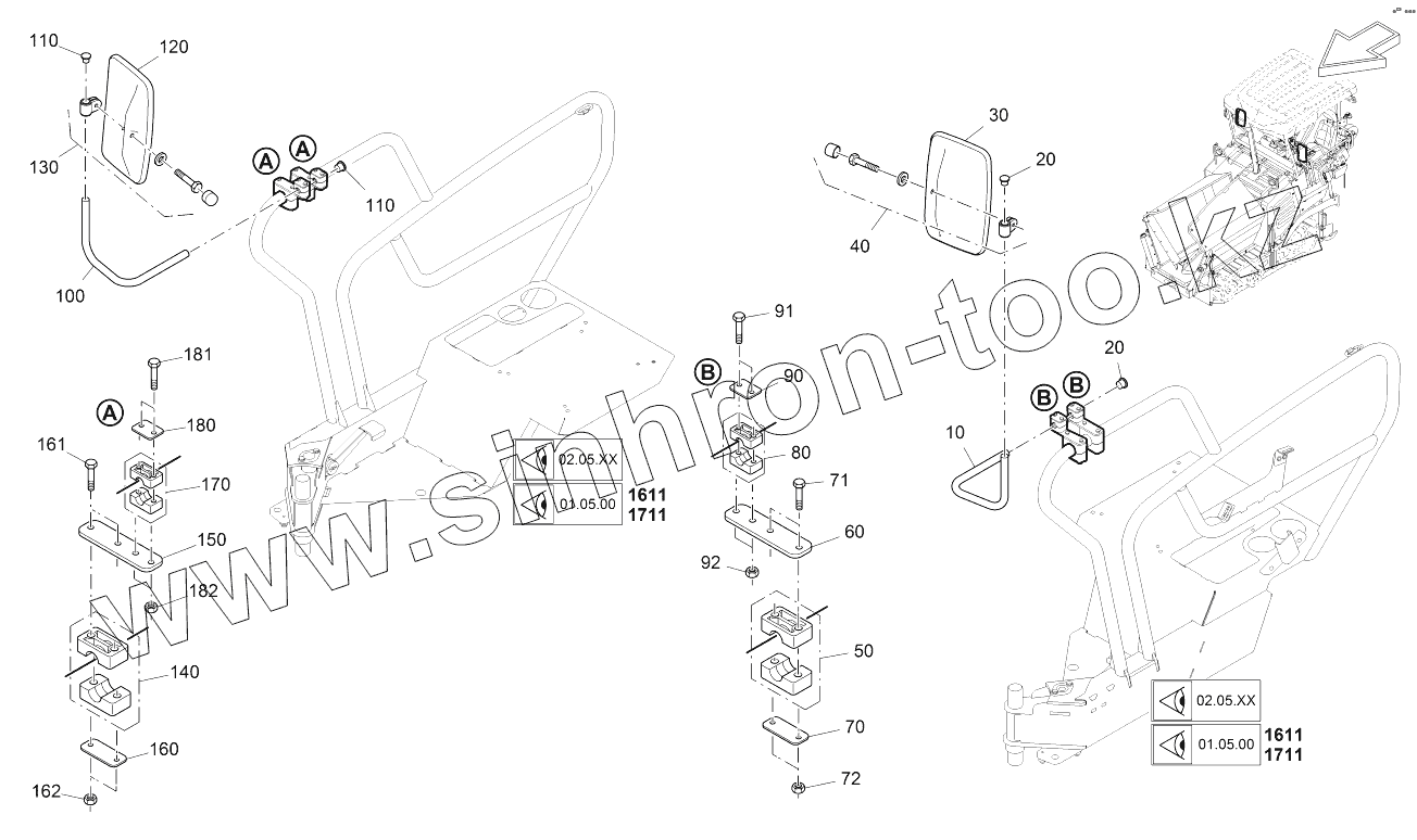 Каталог запасных частей к технике: VOGELE SUPER 1100-3. MIRROR WITHOUT ROOF
