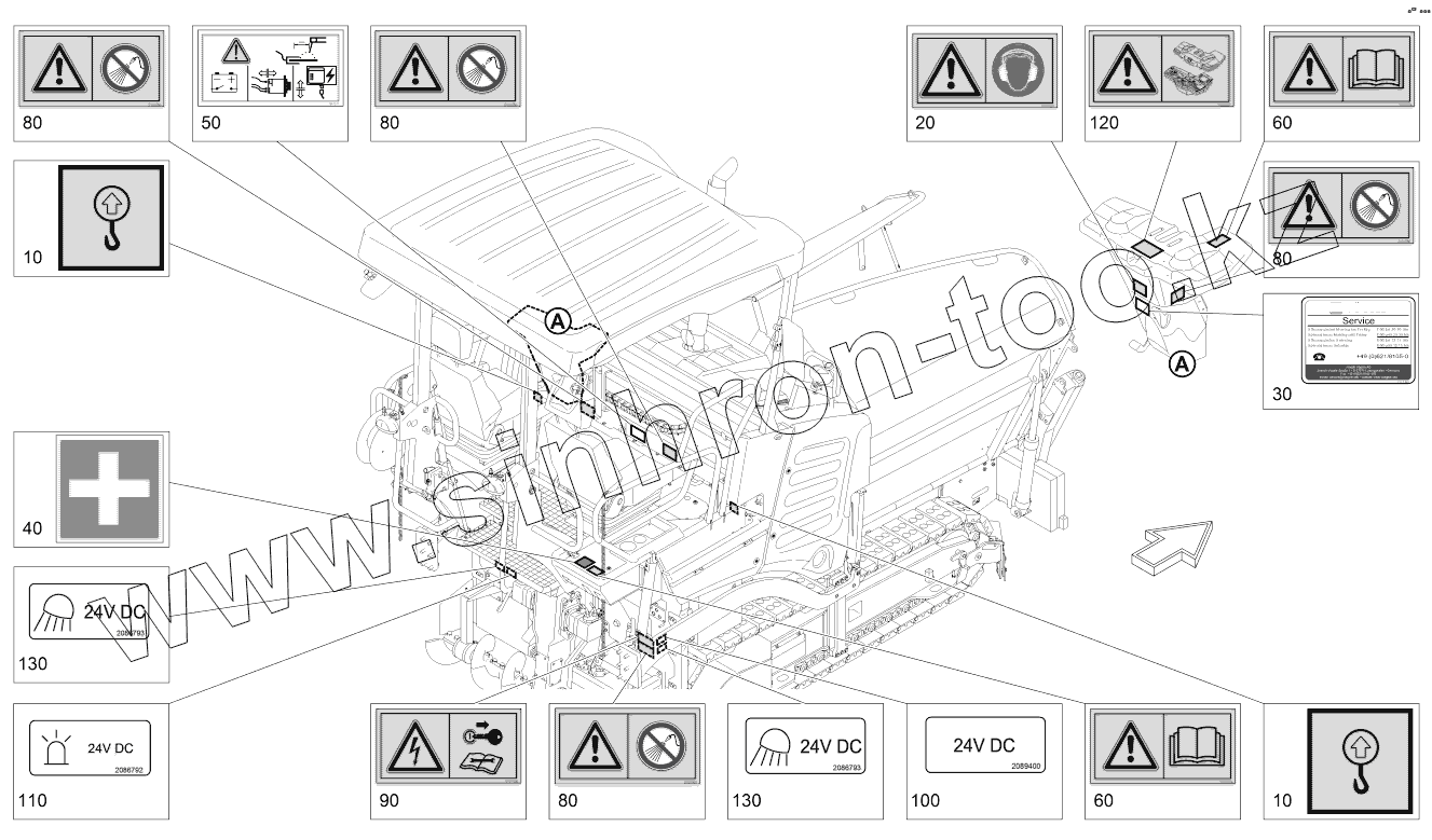 Каталог запасных частей к технике: VOGELE SUPER 1100-3. OPERATING INSTRUCTIONS/WARNING REAR