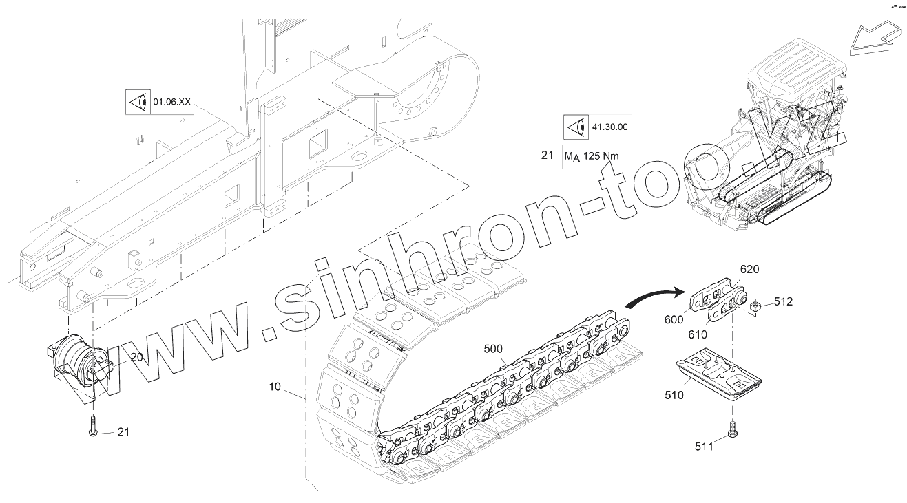 Каталог запасных частей к технике: VOGELE SUPER 1100-3. ROLLER/CRAWLER TRACK