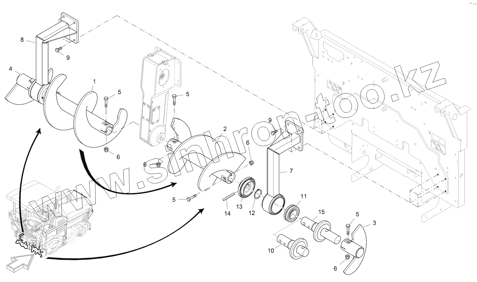 Каталог запасных частей к технике: VOGELE SUPER 1103-2. AUGER SHAFT WITH BEARING