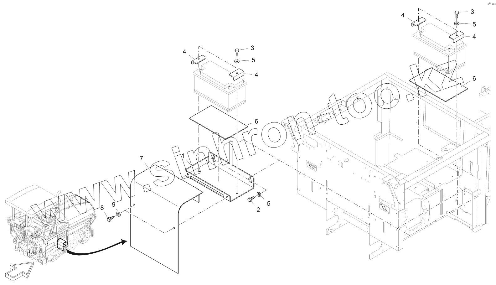 Каталог запасных частей к технике: VOGELE SUPER 1103-2. BATTERY BRACKET