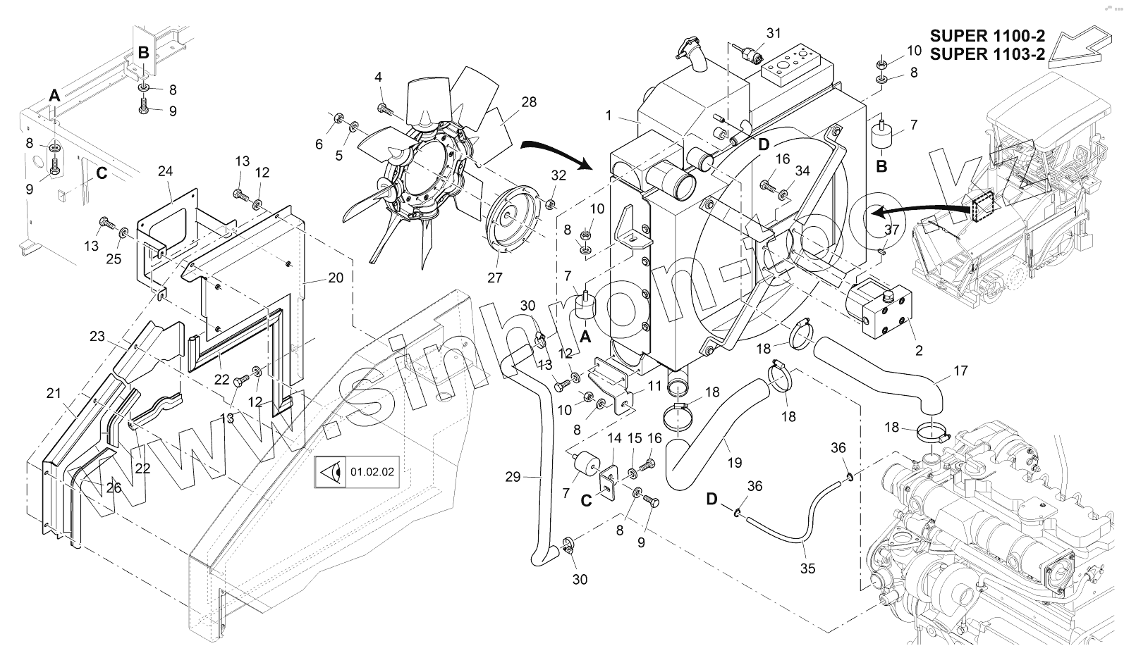 Каталог запасных частей к технике: VOGELE SUPER 1103-2. COOLING SYSTEM