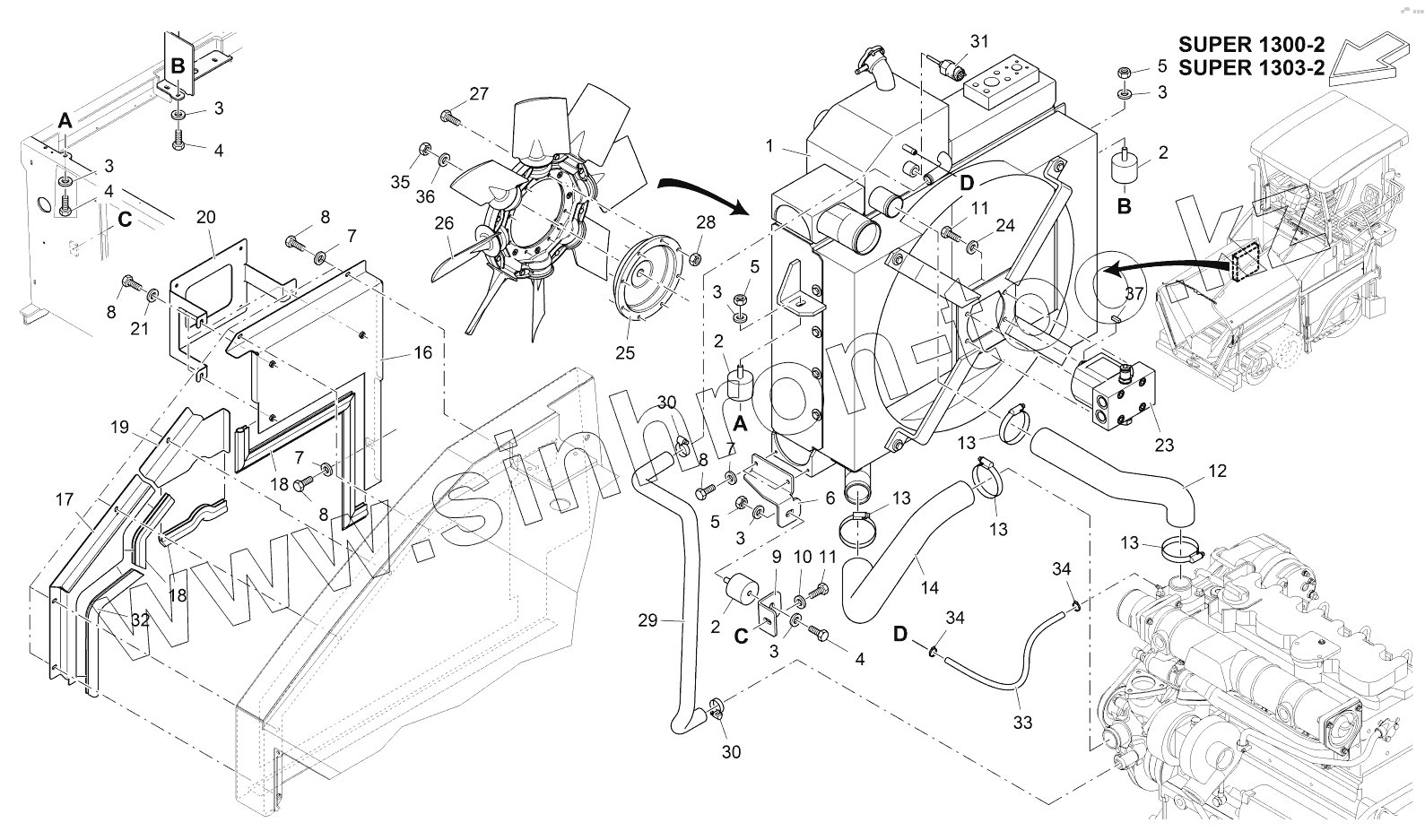Каталог запасных частей к технике: VOGELE SUPER 1103-2. COOLING SYSTEM