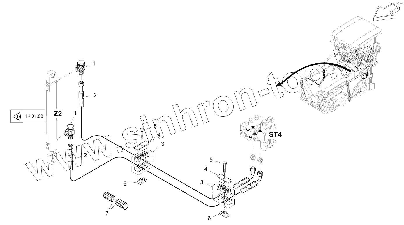 Каталог запасных частей к технике: VOGELE SUPER 1103-2. HYDRAULIC RAM, RIGHT SIDE